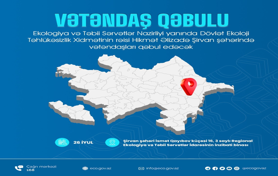 İctimai dinləmə keçiriləcəkTikinti və infrastruktur layihələrinin ekoloji cəhətdən qiymətləndirilməsi, ekoloji rəyin alınması sahəsində şəffaflığın təmin edilməsi və ictimaiyyətin məlumatlandırılması məqsədilə 26 iyul 2024-cü il, saat 15:00-da Dövlət Ekoloji Ekspertiza Agentliyində ictimai dinləmə keçiriləcək.