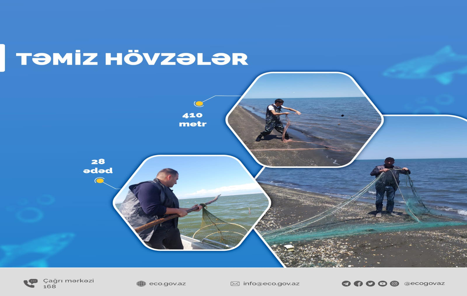 31 May 2024 Avtomatik stansiyalardan əldə olunan məlumata görə, Bakı və Abşeron yarımadasında havada tozun miqdarı normadan 2 dəfə çoxdur. Bunu Milli Hidrometeorologiya Xidmətinin rəsmisi Gülnarə Abbasova bildirib. 30 May 2024 “Yaşıl dünya naminə həmrəylik ili” çərçivəsində regionlarda yaşayan əhalinin ətraf mühitin mühafizəsi sahəsində məlumatlılığını və bu sahəyə olan məsuliyyətini artırmaq məqsədilə Regional Ekologiya və Təbii Sərvətlər İdarələrinin əməkdaşları tərəfindən mütəmadi olaraq maarifləndirici görüşlər keçirilir. 30 May 2024 Davamlı gələcək yaratmaq istəyində olan bütün iştirakçılar üçün tullantıların idarə olunması üzrə rəsm müsabiqəsinə start verilir. Müsabiqə bütün yaş qrupları üçün açıqdır və 20 iyun 2024-cü il tarixinədək davam edəcək. Müsabiqənin şərtləri və qaydaları ilə buradan daha ətraflı məlumat ala bilərsiniz. 30 May 2024 Qanunsuz balıq ovunun qarşısının alınması, istifadəsi qadağan olunan ov alətlərinin su hövzələrindən yığışdırılması məqsədilə təşkil olunan “Təmiz hövzələr” aksiyası çərçivəsində növbəti dəfə sintetik torların su hövzələrindən yığılması həyata keçirilib. 29 May 2024 Bakı Avrasiya Universitetində Milli Hidrometeorologiya Xidmətinin nümayəndələrinin iştirakı ilə “Tələbələrin müvafiq həştəqlərdən istifadə edərək iqlim dəyişikliyi problemləri və COP haqqında məqalələrin yazılmasına və infoqrafikaların paylaşılmasına təşviq edilməsi" mövzusunda tədbir keçirilib.