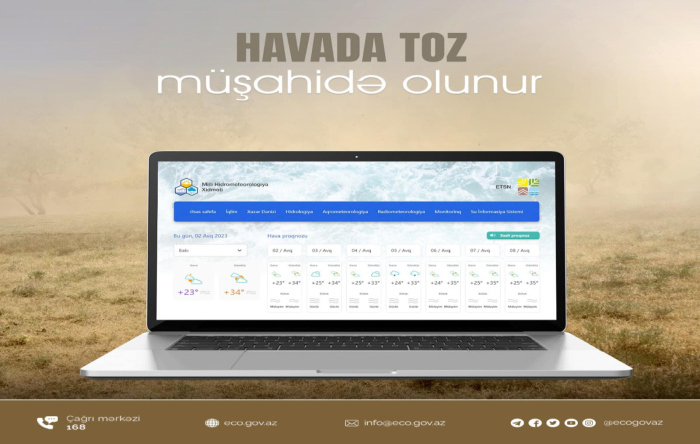 Tozlu hava şəraiti davam edirBu gün ölkə ərazisində meteoroloji şəraitlə əlaqədar olaraq şimal-şərq istiqamətli hava axınlarının üstünlük təşkil etdiyindən, yenidən havada transsərhəd tozlanma müşahidə olunur.