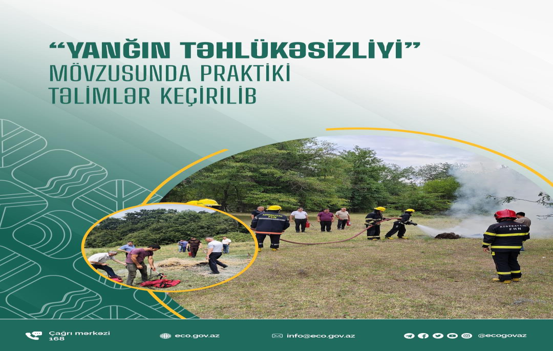 “Yanğın təhlükəsizliyi” mövzusunda praktiki təlimlər keçirilibMeşə və yaşıllıq ərazilərdə yanğın hadisələrinin qarşısının alınması məqsədilə Regional Meşə Təsərrüfatı Mərkəzlərinin, FHN-in Regional Dövlət Yanğın Nəzarəti İdarəsinin əməkdaşlarının, yerli icra hakimiyyəti orqanlarının, bələdiyyələrin, ictimaiyyət nümayəndələrinin və kənd sakinlərinin iştirakı ilə Qax və Ağcabədi rayonunlarının meşə ərazilərində, Korçay Dövlət Təbiət Qoruğunda “Yanğın təhlükəsizliyi” mövzusunda təlimlər keçirilib.