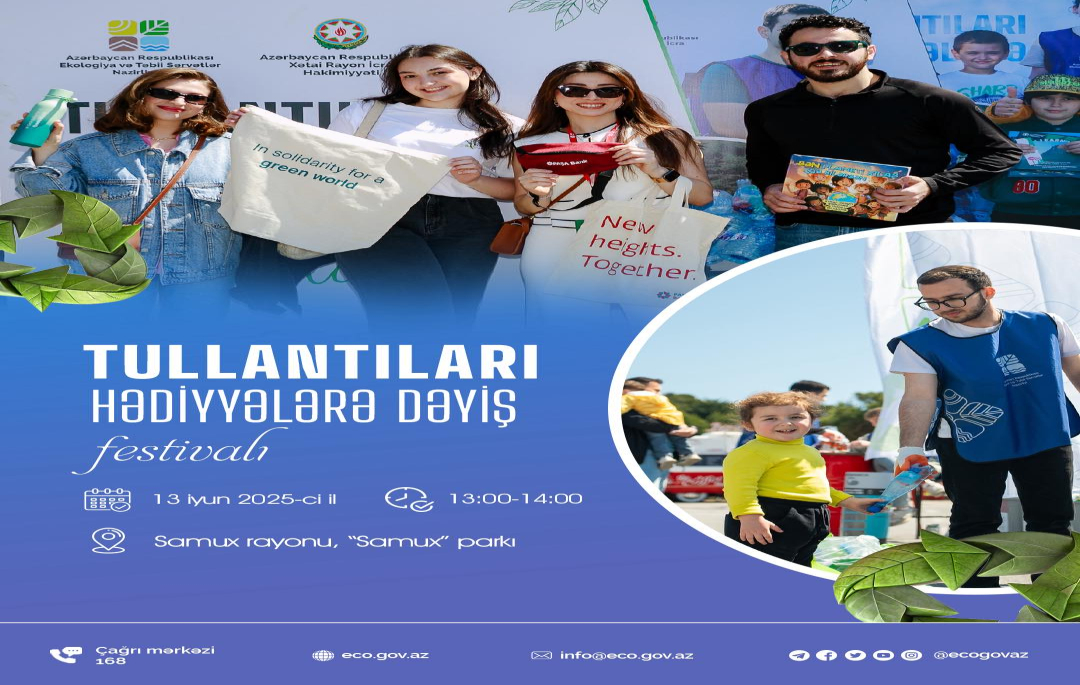 11 İyun 2025 Ekologiya və Təbii Sərvətlər Nazirliyində 15 iyun-Azərbaycan xalqının Milli Qurtuluş Gününə həsr edilmiş "Milli Qurtuluşdan-Şanlı Zəfərə Doğru" adlı tədbir keçirilib. 11 İyun 2025 Regional Ekologiya və Təbii Sərvətlər İdarələri tərəfindən Gəncə, Lənkəran, Şirvan şəhərlərində və Tovuz rayonunda fəaliyyət göstərən məktəblərdə “İnsan hüquqları və ətraf mühit” mövzusunda maarifləndirici görüşlər təşkil olunub. 11 İyun 2025 Ekologiya və Təbii Sərvətlər Nazirliyinin təşkilatçılığı, Samux Rayon İcra Hakimiyyətinin, müxtəlif tərəfdaş qurumların dəstəyi ilə 13 iyun 2025-ci il tarixində “Tullantıları hədiyyələrə dəyiş” festivalı keçiriləcək. 10 İyun 2025 Elm və Təhsil Nazirliyi, Ekologiya və Təbii Sərvətlər Nazirliyi, Məktəbəqədər və Ümumi Təhsil üzrə Dövlət Agentliyi və Gənclərin İnkişaf və Karyera Mərkəzinin dəstəyi ilə "Regional İnkişaf" İctimai Birliyi tərəfindən icra olunan “Məktəblərdə “Yaşıl Könüllük” Proqramının İcrası” layihəsi çərçivəsində məktəblilər üçün ekskursiyalar keçirilib. 06 İyun 2025
