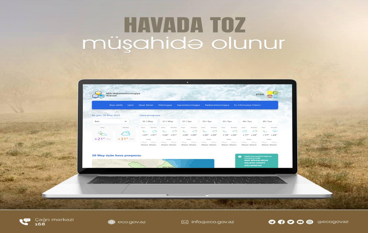 02 İyun 2025 Abşeron Milli Parkında Ümumdünya Ətraf Mühit Günü münasibətilə Abşeron Milli Parkında “Duyğular və təbiət” adlı rəsm sərgisi keçirilir. 30 May 2025 Ekologiya və Təbii Sərvətlər Nazirliyi tərəfindən həyata keçirilən “Təmiz ölkəm” Ümumrespublika Təmizlik Marafonu çərçivəsində növbəti təmizlik aksiyasına Azərbaycan Dövlət İqtisad Universiteti də qoşulub. 30 May 2025 Bakıda və Abşeron yarımadasında tozlu hava şəraiti müşahidə olunur. 29 May 2025 “Təmiz ölkəm” devizi altında Ümumrespublika Təmizlik Marafonu çərçivəsində növbəti təmizlik aksiyası Xəzərin Bilgəh sahilində keçirilib. 29 May 2025 Ekologiya və Təbii Sərvətlər Nazirliyinin tabeliyində “AzeLab” MMC Antiinhisar və İstehlak Bazarına Nəzarət Dövlət Xidmətinin tabeliyində olan Azərbaycan Akkreditasiya Mərkəzi tərəfindən (AzAK) akkreditasiyadan keçirilib.